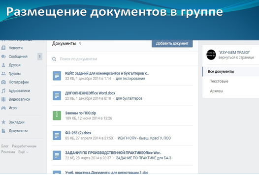 Группа «Изучаем право!» позволяет преподавателю общаться с большой аудиторией студентов, в том числе индивидуально, используя обратную связь.