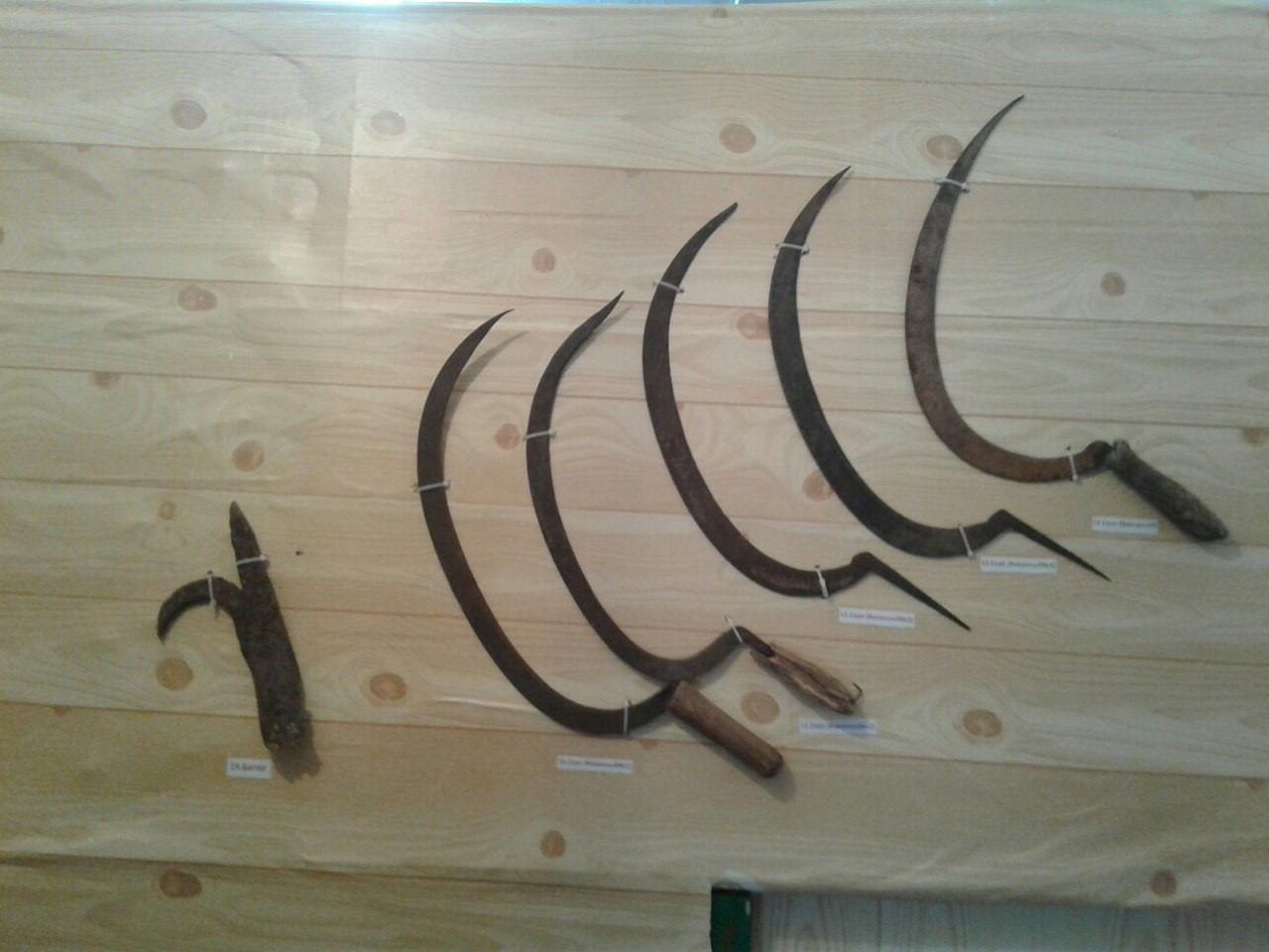 Ведущий 1: А это - серпы. Серп - ручное сельскохозяйственное орудие, жатвенный нож. Обычно используется для уборки зерновых культур жатва хлебов и резки трав (при заготовке фуражных кормов для скота).