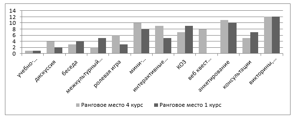 Несмотря на полученные данные по ранговой корреляции методов и форм для формирования и развития межкультурной компетенции следует отметить, что: