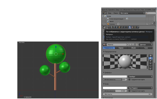 10) Делаем то же самое с другими сферами, а для ствола выбираем другую текстуру (кора дерева).