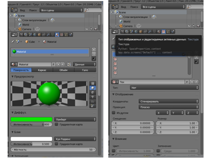6) Мы видим, что наши сферы стали зелеными. Теперь, нам надо перейти во вкладку «Текстура» (рис. 3.4).