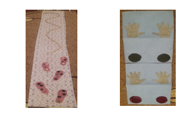 Для выполнения этой дорожки можно использовать более «мягкие» материалы: жгуты и веревки разной толщины, клеенчатые следочки и пуговицы разного размера, фетр и клеевую пленку.
