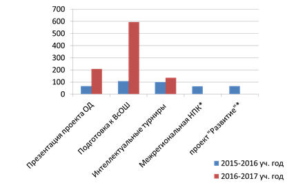 - мероприятий направленных на углубленное изучение отдельных предметов, подготовку к школьному, муниципальному и региональному этапу Всероссийской олимпиады школьников по двум возрастным группам (7-9 класс, 10-11кл.) по направлениям: математика; физика, химия;