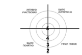 5. «Мишень» - учащиеся выполняют рефлексию учебной деятельности по заданным критериям. На доске рисуется мишень, которая делится на 4 сектора. В каждом секторе записываются параметры- вопросы рефлексии состоявшейся деятельности. Учащиеся ставит метки в сектора соответственно оценке результата: чем ближе к центру мишени, тем в большей степени проявился данный параметр.