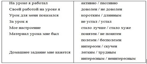 1. В начале урока эмоциональную рефлексию проводят с целью установления контакта с классом. Можно поставить музыку (в соответствии с темой), зачитать эмоциональное стихотворение. Потом обязательно спросить нескольких учеников: «Что ты чувствуешь сейчас? Какое настроение у тебя?» Во-первых, учащиеся привыкают оценивать свое состояние, свои эмоции, во-вторых, учатся аргументировать свою точку зрения. Кроме того, такая рефлексия поможет учащимся настроиться на восприятие темы.