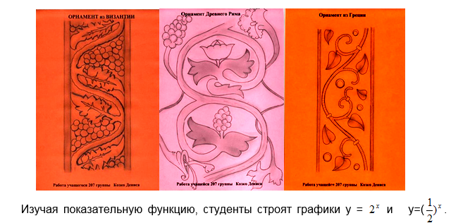Эти фразы, предваряющие изучение темы, позволяют понять, что с помощью тригонометрических функций можно описать любые колебательные процессы, в том числе и звуковые колебания. И как не рассказать ученикам о сочетании церковной коллективной молитвы с колокольным звоном по гармонизации пространства, когда от звуковых колебаний колокола погибают вирусы гриппа, расположенные под ним, (доказано экспериментально). Вызывает истинное восхищение и красота волнистой линии (синусоиды), которая является основой многих бордюров, орнаментов, в том числе используется в обрамлении святых икон.