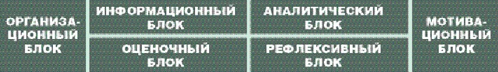 Выделенные блоки (организационный, мотивационный, информационный, аналитический, оценочный, рефлексивный) являются звеньями целостной системы образования (обучения и воспитания). Отсутствие каждого из них разрывает единство и создаёт серьёзные провалы.