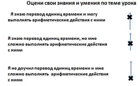 Класс оценивает работу ученика у доски по критериям: - правильность перевода единиц измерения времени; - правильность арифметических вычислений; - связная речь.
