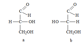 Общее число стереоизомеров для любого моносахарида выражается формулой N = 2n, где N – число стереоизомеров, а n – число асимметричных атомов углерода. Например, глицеральдегид содержит только один асимметричный атом углерода и поэтому может существовать в виде двух различных стереоизомеров [3].