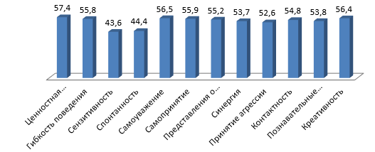 Хуже всего развиты сензитивность и спонтанность, можно сказать, что испытуемые не всегда осознают свои потребности, выражают свои эмоции и чувства.