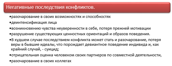 Рисунок 2 - Отрицательные последствия конфликтов