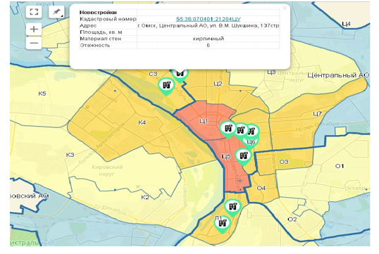 Рисунок 1. Нанесение новых объектов недвижимости на карту города
