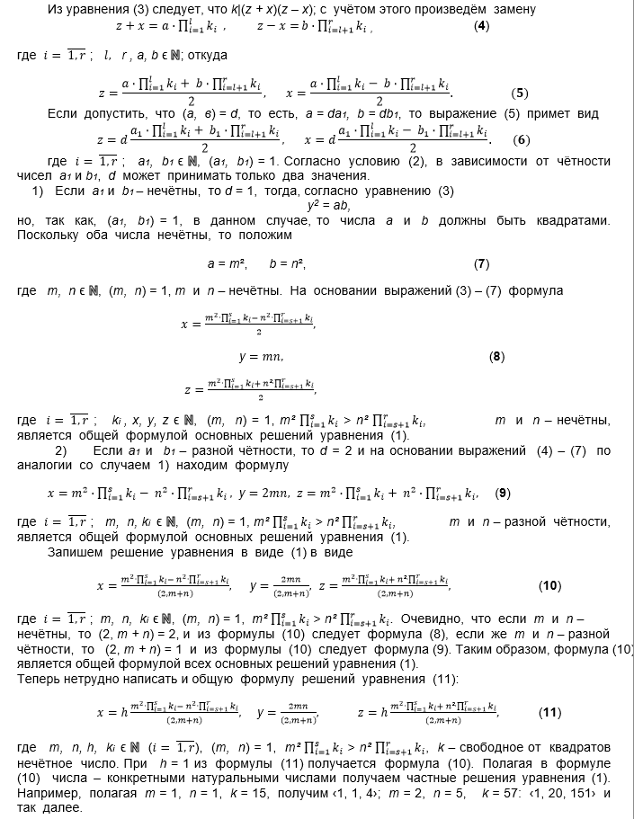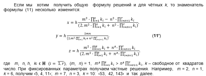 где k, x, y, zϵ N, k – свободное от квадратов любое нечётное число.