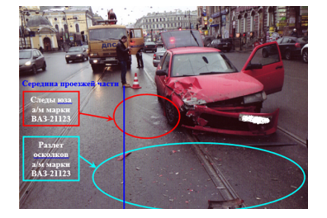 Рисунок 2. Фото места аварии с пояснениями.