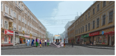 Рис. 4 Проверка соразмерности памятника Саратовскому калачу людям и окружающему городскому пространству.