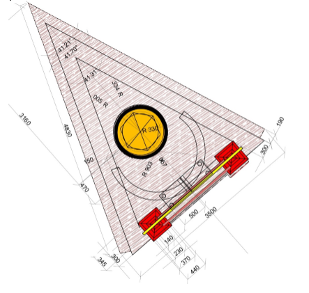 На рисунке 6 представлен план памятника, или другими словами вид сверху. Здесь мы видим основные габаритные размеры, точки привязок, от которых отсчитываются центры диаметров круглых форм, а также размеры башенок в плане.