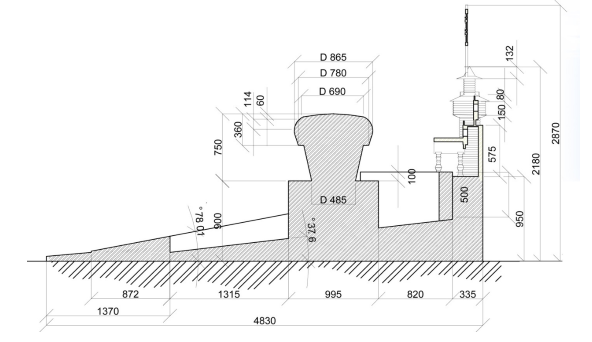 На рисунке 8 представлен разрез памятника. Здесь мы можем видеть все недостающие высотные размеры, а также углы наклона плоскостей. То, что попадает в разрез, выкрашено штриховкой, не попадающий в разрез задний план оставлен белым.