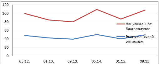 Изначально стоит понять, что думают россияне о национальном благополучии, и каков их уровень экономического оптимизма.[1] Эти 2 показателя можно рассмотреть взаимосвязано относительно друг друга и сделать вывод.