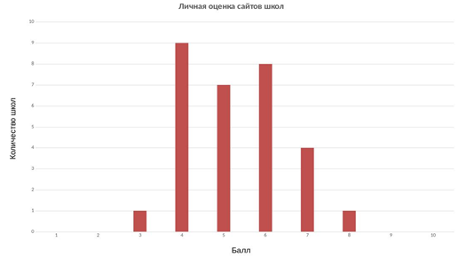 Во время анализа сайтов школ мы также определяли личную оценку сайта по шкале от 0 до 10 баллов. Каждый из нас мог самостоятельно поставить её в зависимости от своего личного мнения, основывающегося на удовлетворённости при работе с данным интернет-ресурсом.