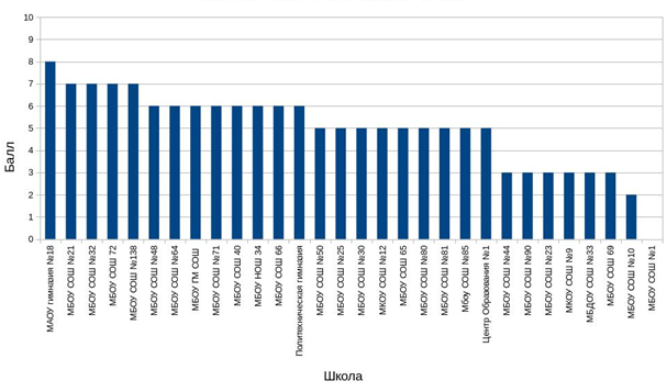 Собрав данные в отдельные таблицы, мы получили следующие общие графики (рис. 1 — Личная оценка сайтов школ, рис. 2 — Общая оценка сайтов школ, согласно выдвинутым критериям, рис. 3 — Рейтинг сайтов школ Нижнего Тагила):