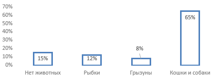 По данным опроса ВЦИОМа самые популярные у россиян животные — кошки, их держат 37 % всех, кто, имеет дома какого-либо питомца. Из этих 37 % — 29 % предпочли беспородных, 8 породистых. Собак имели 30 % опрошенных (то есть примерно каждый третий россиянин: 19 % — беспородных, 11 % — породистых[4].