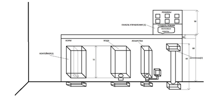 Авторами данной статьи предложен экспериментальный аппарат, дизайн-макет изображен на рисунке 3, предназначенный для дистанционного кормления и лечения домашних любимцев, в отсутствии хозяина- дозатор для ветеринарных специфических форм.