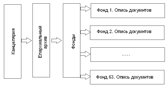 На рисунке 1. Отражена структура систематизации описи документов в Вятской Митрополии епархиального архива.
