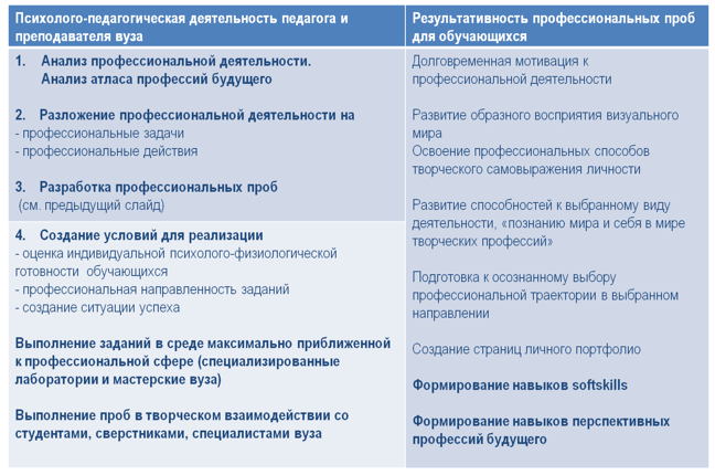 Пример разработки профессиональных проб в вузе