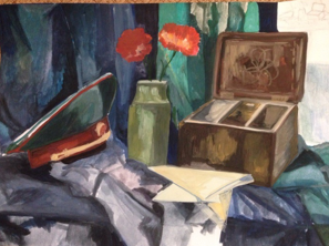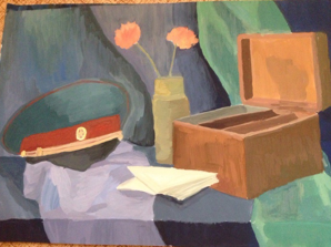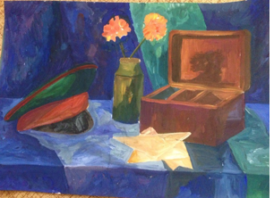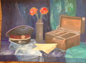 При составлении натюрморта на военную тему хотелось через предметный мир соприкоснусь школьников с историей. Военная тематика натюрморта притягательна спецификой предметов. Особое место занимают гильзы, походный котелок, бинокль, ордена, это та малая, подлинная часть большой истории. Эти предметы, как правило, заставляют школьников проникнуться темой войны. И когда педагог рассказывает о том или ином предмете, о его назначении во время войны, и почему эти предметы собраны в данной композиции, интерес школьников значительно усиливается. Так же положительно влияет музыкальное или видео сопровождение, что помогает глубже прочувствовать атмосферу и вызвать определенные чувства, которые в дальнейшем изображаются в работе.