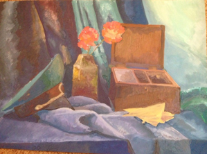 В данной работе наблюдается незначительное искажение формы предметов, не хватает цвета в гвоздиках, для создания акцентного пятна. |