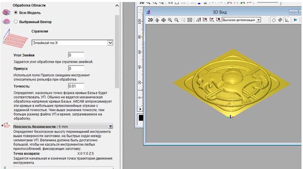 Полученная модель загружается в систему автоматизации технологической подготовки производства. В данном случае был использован ArtCAM.