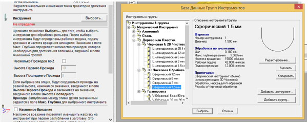 Выбор инструмента зависит от конфигурации модели и оборудования, на котором будет изготавливаться изделие. Рациональное построение технологического процесса предполагает разделение операций обработки разных по типу поверхностей и, следовательно, выбор различного инструмента для операций. Например, для обработки плоских поверхностей не подходит сферический инструмент, поэтому эти поверхности целесообразно обрабатывать отдельно.