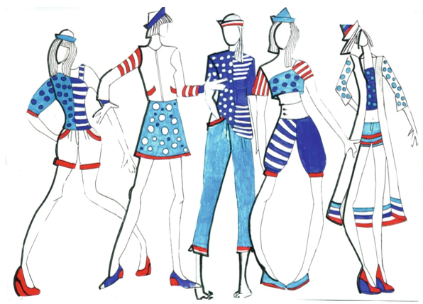 Рисунок 3 – Эскиз коллекции «Морячка», автор Валова О. Е., 2017 г