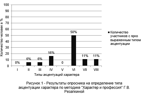 Результаты тестирования по опроснику «Характер и профессия» Г.В. Резапкиной представлены на рисунке 1.
