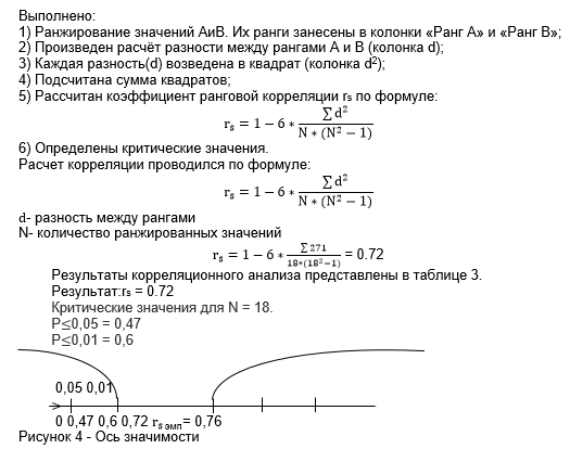 Проверим, насколько учащиеся с ярко выраженным гипертимным типом акцентуации характера имеют склонность к работе с людьми, и для этого выполним расчет коэффициента корреляции Спирмена, результаты представлены на рисунке 4.
