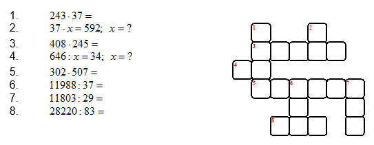 Кросснамбер по теме «Умножение и деление натуральных чисел»