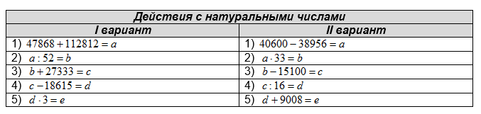 Например, управляемая самостоятельная работа по теме «Действия с натуральными числами»