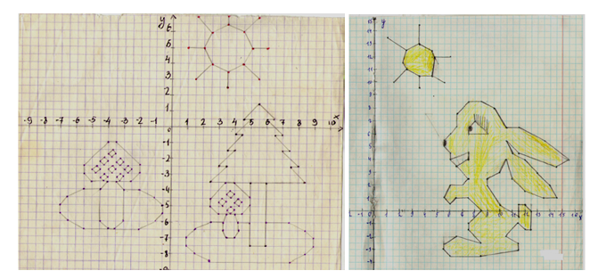 При изучении темы «Координатная плоскость» можно предложить учащимся составить рисунок по заданным точкам или описать данный рисунок координатами точек. В этом случае удобно организовать работу в парах. Можно дать домашнее задание составить и описать рисунок, а на уроке попросить учащихся обменяться работами и выполнить взаимопроверку.