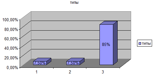 Анализ результатов исследования по методике «Маскулинность-фемининность» показал, что преобладающим типом среди испытуемых является андрогинный (85%). Из этого следует, что у девушек и юношей нашей выборки проявляется одновременное сочетание и женских, и мужских свойств, то есть одновременного проявления личностной маскулинности и фемининности. Андрогинный индивид, как указывают многие авторы, не теряет качеств, свойственных его полу, и не приобретает черт, относящихся к противоположному полу: в нем развиваются качества, присущие обоим полам и исходно заложенные в его природе, которые проявляются только в зависимости от его собственных половых наклонностей. Исходя из полученных данных, можно сделать вывод о том, что в современном обществе роли между мужчинами и женщинами стираются, поэтому такой достаточно большой процент андрогинии. Женщины стараются подобать мужчинам (строить карьеру, много зарабатывать, быть сильными и напористыми и т.д.), мужчины в свою очередь, наоборот, в своём поведении и личностным качествам становятся похожими на женщин. Мы можем утверждать, что большинство испытуемых нашей выборки не подвержено стереотипам маскулинности-фемининности.