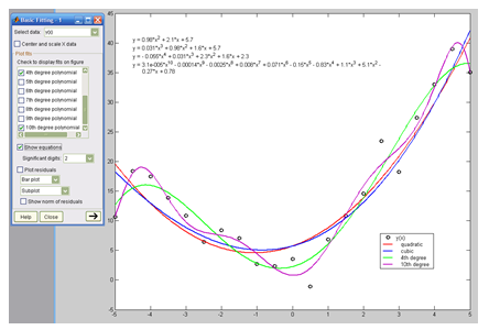 Результат такого графического анализа можно использовать в последующем расчете регрессии с помощью функции polyfit, вводя в неё выбранную степень полинома.