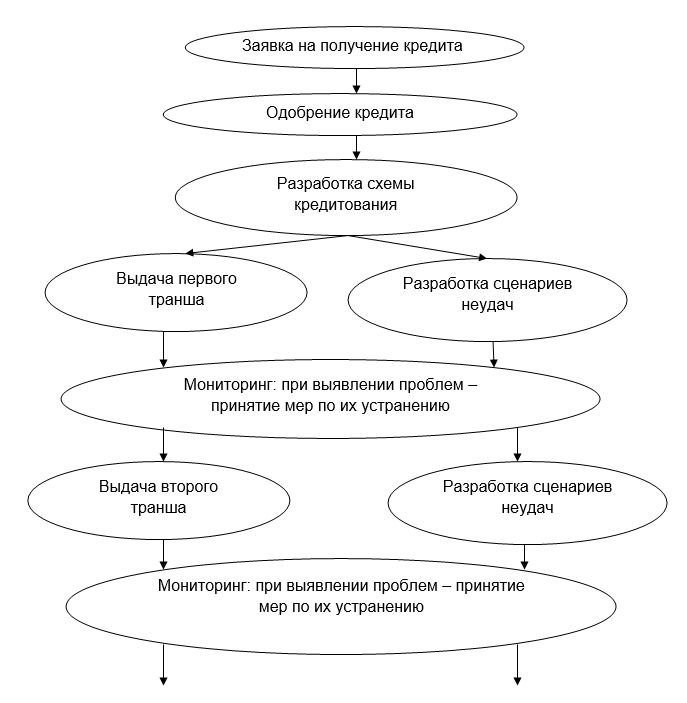 В процессе кредитования проекта по стадиям создания и развития нового производства или нового продукта банку можно предложить следующий механизм действий.