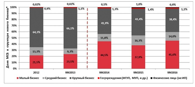 Доля малого и среднего бизнеса в объеме нового бизнеса