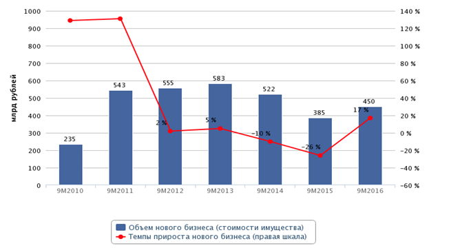 Объем нового бизнеса (стоимости имущества), млрд. рублей |