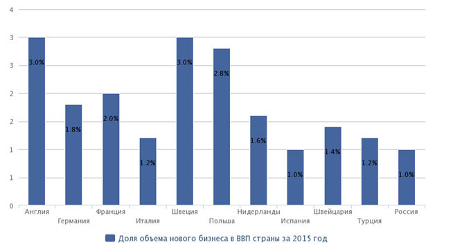 Среди европейских рынков лизинга российский сопоставим с Испанией, Италией и Турцией (график 5). При этом Россия уступает крупнейшим лизинговым рынкам Европы (Англии, Франции, Германии), доля которых в объеме ВВП своей страны составляет не менее 1,8%.