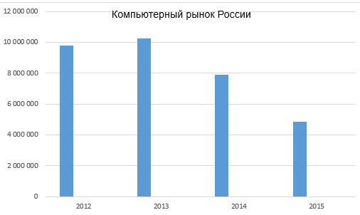 Рисунок 2. Состояние компьютерного рынка в России с 2012 по 2015 годы.