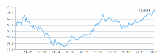 Курс доллара в 2015 году начал свой отсчёт с отметки 56,2376 рубля за доллар и к 31 декабря достиг отметки 72,8827рублей за доллар США. В среднем, в 2015 году рост курса доллара с начала года повысился на 30%.