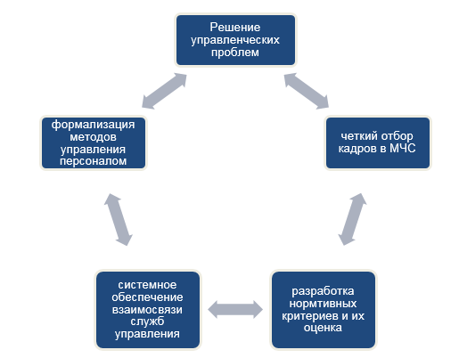 Кроме того, к решению управленческих проблем должны применяться методы, позволяющие обеспечить структуры МЧС кадрами, готовыми к осуществлению задач, стоящих перед работниками (рисунок 1) [3].