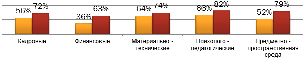 Проведенная исследовательская работа показала повышение уровня условий для обеспечения качества дошкольного образования. Это говорит об эффективности, применяемой в работе системы контроля через все структурные подразделения детского сада. Результаты видны на графике.