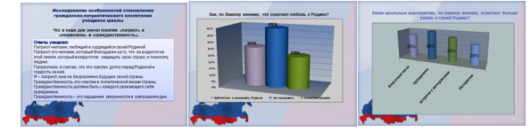 После всех проведенных мероприятий мы провели исследование особенностей становления гражданско-патриотического воспитания учащихся школы, которые показали следующие результаты.