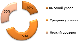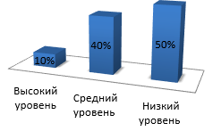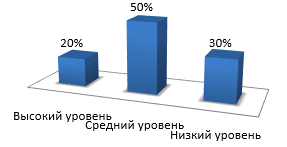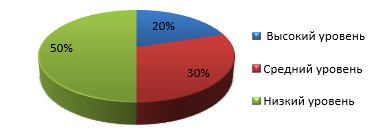 Анализ результатов проведенного диагностирования по методике «Эмоциональная идентификация» в экспериментальной группе показывает, что: 5 детей (50%) находятся на низком уровне, 3 детей (30%) находятся на среднем уровне, 2 детей (20%) находятся на высоком уровне. Результаты диагностики на выявление уровня эмоциональной идентификации старших дошкольников на констатирующем этапе отражены на диаграмме 1.